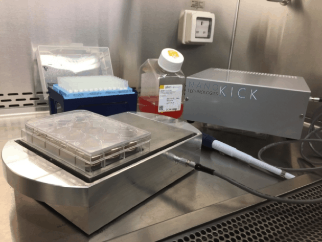 The Nanokicking bioreactor being used in a cell culture hood.